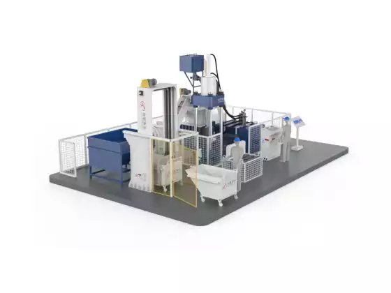 বাইন্ডার যুক্ত না করেই শক্ত ব্লকে আলগা ব্রোঞ্জের চিপগুলিকে সংকুচিত করতে সিস্টেমটি একটি উচ্চ-চাপের হাইড্রোলিক সিলিন্ডার ব্যবহার করে। কম্প্রেশনের সময়, কাটিং তরল এবং তেল আলাদা করা হয়, যা ক্লিনার পুনর্ব্যবহারযোগ্য এবং উন্নত চুল্লি কর্মক্ষমতা মঞ্জুরি দেয়।